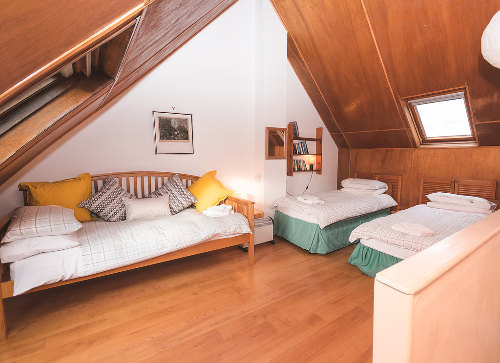 Upstairs there is a large bedroom that sleeps three comfortably.